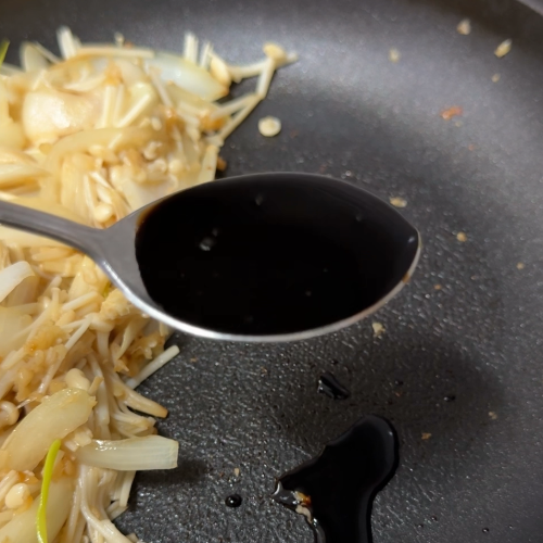 간장소스의 감칠맛과 오독오독한 팽이버섯 식감의 조화가 최고였어요!