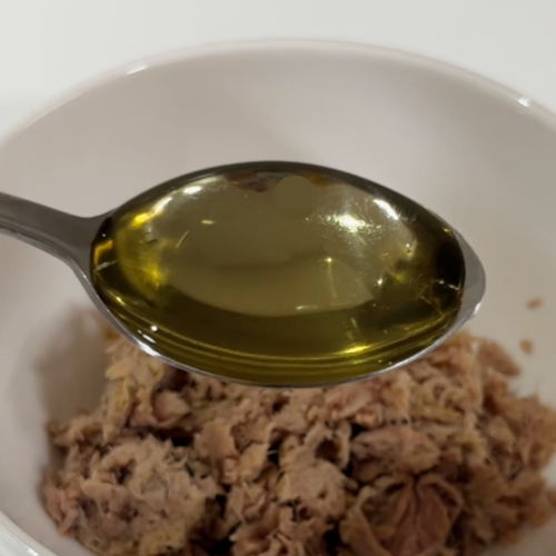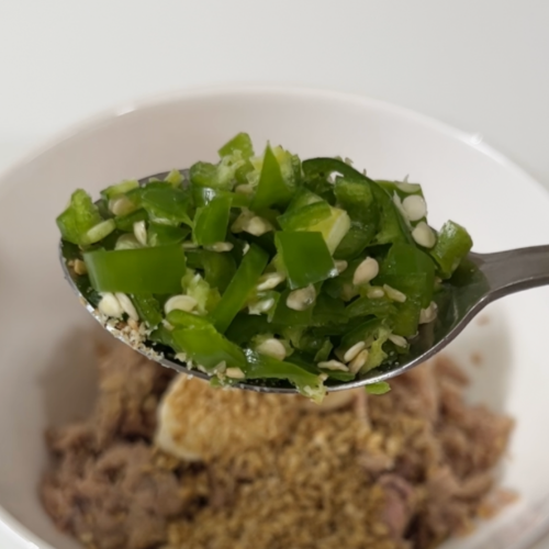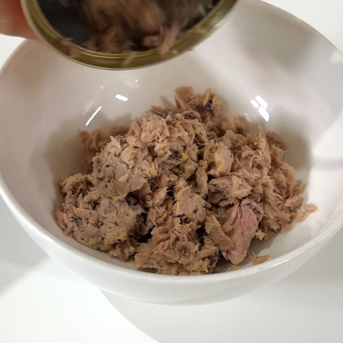 3. 기름 뺀 참치 1캔(100g)에 알룰로스 1숟가락, 저칼로리 마요네즈 1숟가락 넣는다.