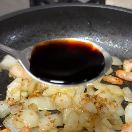 6. 잠시 불끄고, 간장, 알룰로스, 케첩, 고춧가루 1숟가락 씩 넣어 칠리소스를 만든다.